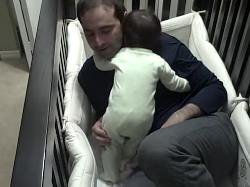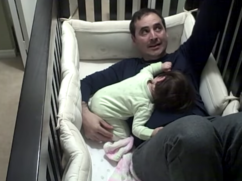 Ông bố "chiều con nhất quả đất" này đã tìm mọi cách để dỗ cô bé ngủ nhưng đều thất bại, và cuối cùng là... phải bế cô bé rời khỏi chiếc cũi, về phòng ngủ cùng hai vợ chồng. Quả là một ông bố "ngọt ngào"!