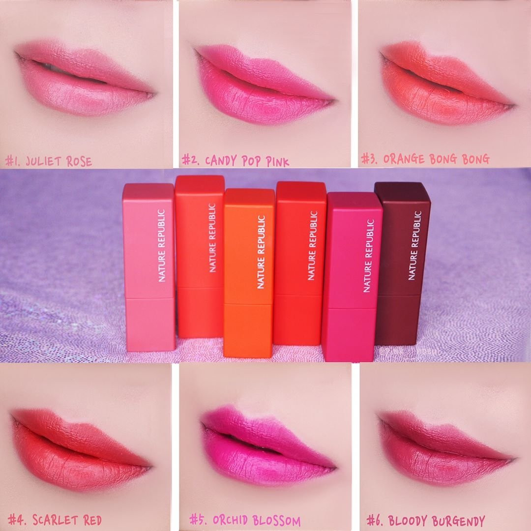 6 màu trong set đều rực rỡ nhưng khác hẳn nhau về tông, sắc độ, đáp ứng đủ yêu cầu của mọi cô gái trong từng hoàn cảnh. Màu Juliet Rose là tông hồng nhạt như cánh hoa, màu Candy Pop Pink thiên về sắc hồng fuchsia sang chảnh, màu Orange Bong Bong là cam tươi rực rỡ, màu Scarlet Red có sắc đỏ thuần ai-đánh-cũng-hợp, màu Orchid Blossom là sắc tím hồng hợp với những buổi tiệc tùng còn màu Bloody Burgendy là tông đỏ thẫm rất kiêu sa.