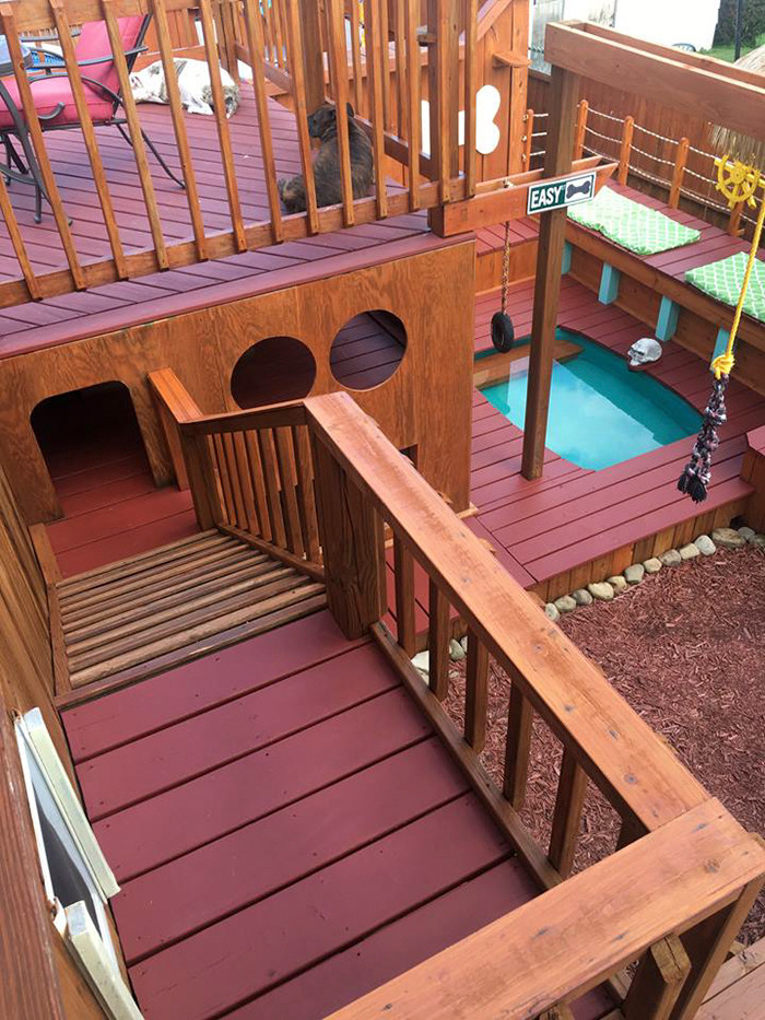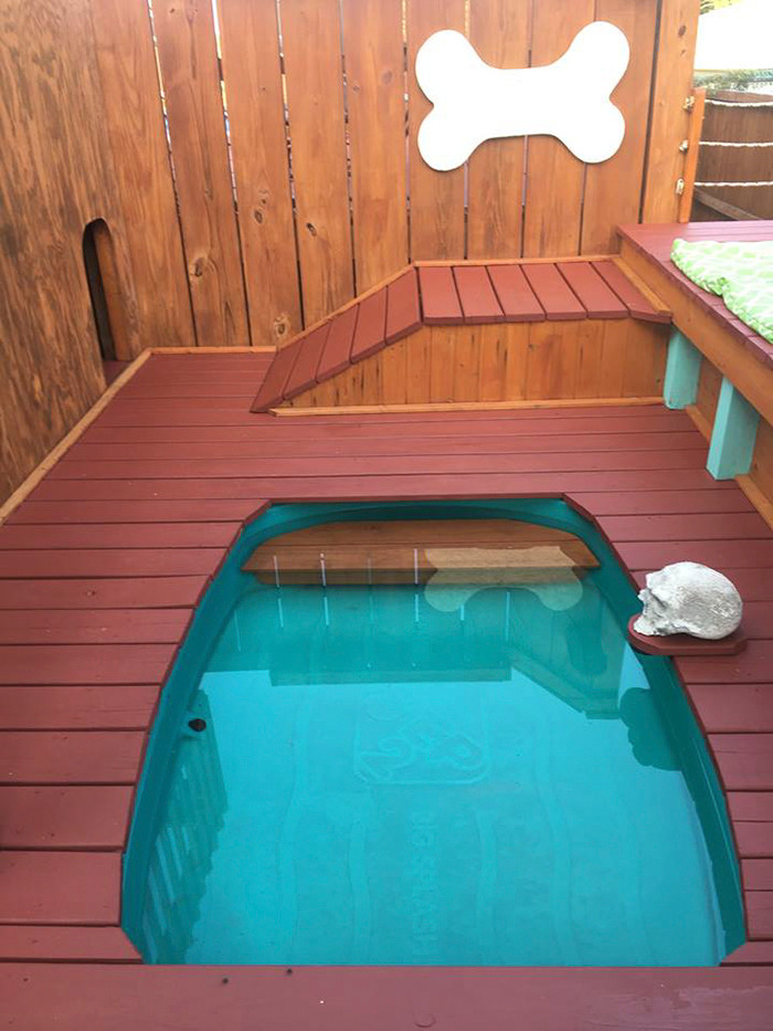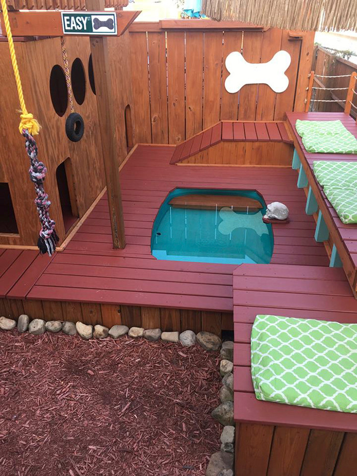 Aaron Frank vừa chính thức gia nhập hội những người tận tâm vì... chó khi "xắn tay áo" lên và "hô biến" sân sau nhà thành một sân chơi dành riêng cho bốn chú chó cưng. Sân chơi cool ngầu này sở hữu đầy đủ tiện nghi từ chỗ nằm sưởi nắng, khu "giải quyết" đến hồ bơi mini khiến bao người thầm ghen tỵ. Buổi tối "căn nhà" chó này còn được lên đèn mờ ảo trông chẳng khác gì một khu resort cao cấp!