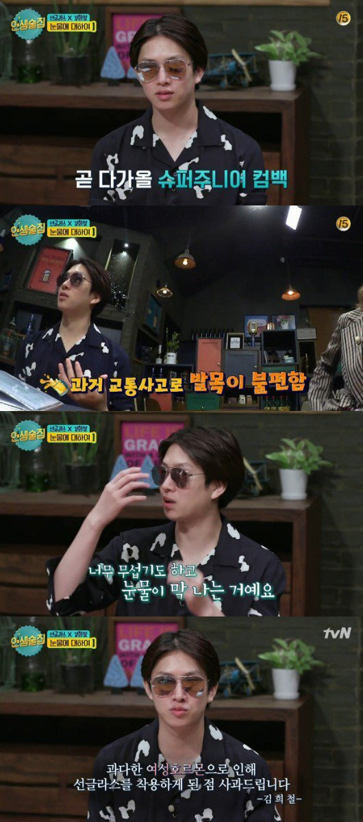 Heechul chia sẻ anh đã khóc trong suốt một giờ sau khi tập luyện cho sự trở lại của Super Junior. Vào ngày 28 tháng 9 trong chương trình Life Bar của tvN, MC Heechul xuất hiện với cặp kính râm. Nam thần tượng giải thích: "Mắt tôi sưng lên vì tôi đã khóc trong một giờ".