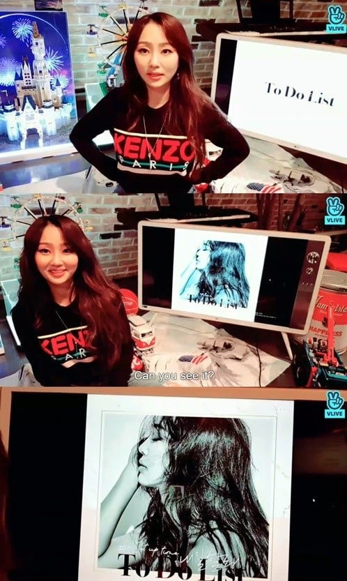 Trong suốt phần còn lại của chương trình phát sóng, Hyorin tiết lộ vài lời bài hát của To Do List, và cùng trò chuyện vui vẻ với người hâm mộ của cô. Cô nàng cũng đã chia sẻ những hình ảnh của mình trong single để cám ơn fan khi buổi livestream đạt hơn một triệu trái tim. “To Do List là một bài hát chân thật và đầy sự chân thành, thời gian qua mình cũng đã học hỏi được rất nhiều điều. Sẽ thật tuyệt nếu tất cả các bạn đều nhận được sự chân thành của mình.” – Hyorin chia sẻ.