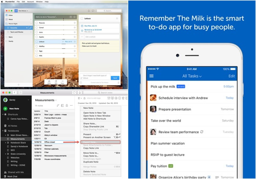 Một số ứng dụng như Wunderlist, Evernote, Remember the milk,... sẽ giúp ích cho bạn rất nhiều trong việc lên kế hoạch những điều cần làm. Ngoài ra, việc ghi chú công việc còn giúp những bạn có "não cá vàng" dễ dàng kiểm tra để không phải bỏ sót công việc nào.