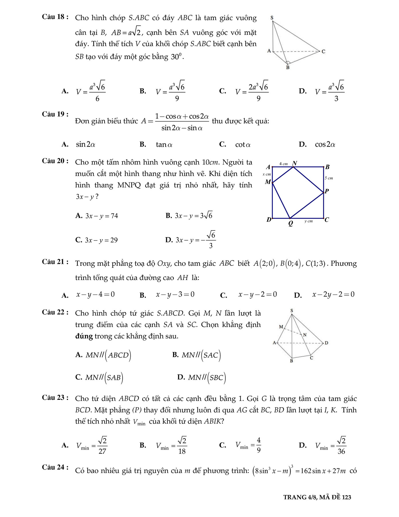 Dưới đây là đề thi thử THPT Quốc gia 2019 môn Toán lần 1 của trường THPT Lômônôxốp.