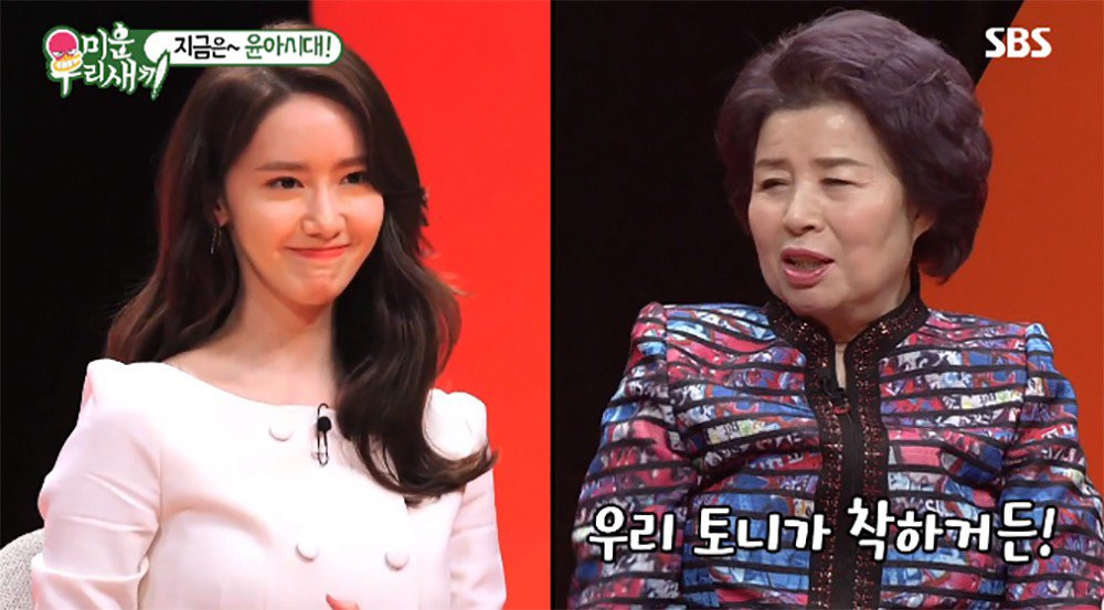 Mới đây, Yoona đã trở thành khách mời trong show giải trí My Little Old Boy (Cậu con trai lớn tuổi bé bỏng của tôi) của đài SBS. Đúng như tên gọi, những người chơi chính trong chương trình là mẹ của nhiều nam nghệ sĩ đã qua tuổi 30 nhưng vẫn chưa kết hôn, thậm chí còn chưa có bạn gái.