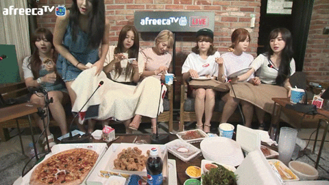 Trong một diễn biến khác cũng thuộc đội AOA, mời bạn nhìn kỹ sang góc bên trái. Seolhyun vừa đứng lên đi lấy thức ăn là Chanmi nhanh chóng đưa tay kéo váy giúp bạn, trong khi bản thân Chanmi vẫn đang mải mê ăn uống.