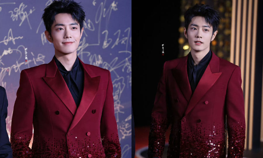 Tiêu Chiến là một trong những ngôi sao "áp trục" của thảm đỏ Đêm hội Weibo 2024. Anh chọn một bộ suit đỏ kết hạt cườm lấp lánh, thu hút, "đốn tim" fan với nụ cười tỏa nắng quen thuộc.