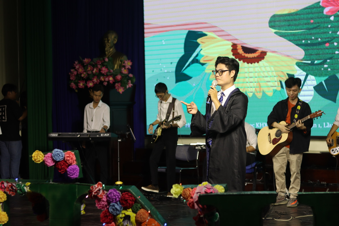 Đêm nhạc quy tụ dàn khách mời gồm ca sĩ Quang Trung, SEAN, rapper Freaky, Đinh Trang, GB... cùng sự góp mặt của các thành viên các CLB, hội, nhóm văn nghệ của trong và ngoài trường đã thu hút đông đảo sinh viên tham dự.