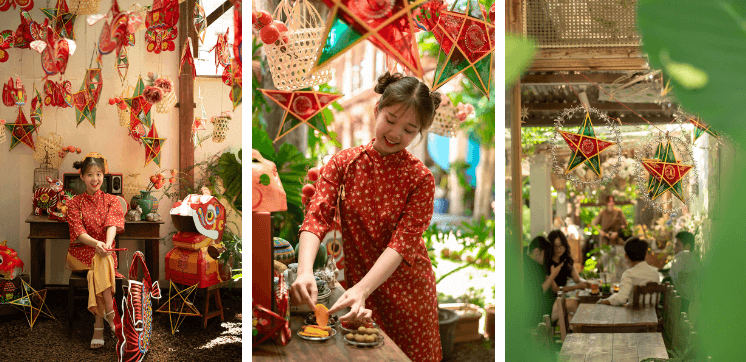 Vào dịp này, hầu như quán cà phê nào cũng trang trí lồng đèn đủ kiểu dáng, đậm màu sắc cổ truyền. Bạn hãy lên đồ thật xinh, và đi cùng một người bạn biết chụp ảnh là tha hồ tạo được một album Trung Thu xịn mịn rồi đó!