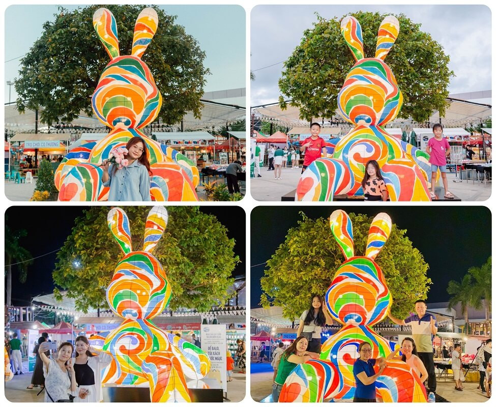 Đặc biệt nhất chính là chú thỏ khổng lồ ngay khu cổng vào của chợ đêm. Với màu sắc bắt mắt, ấn tượng, khi đứng cạnh em ấy là bạn auto có hình xinh rồi!
