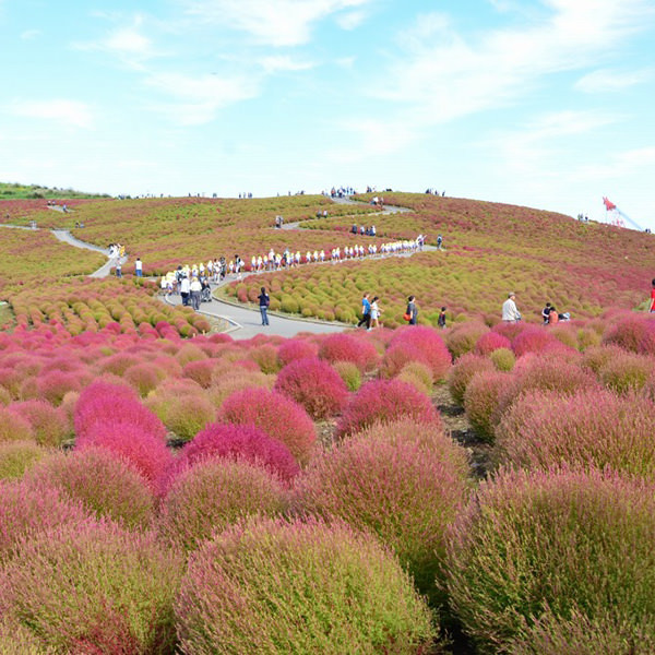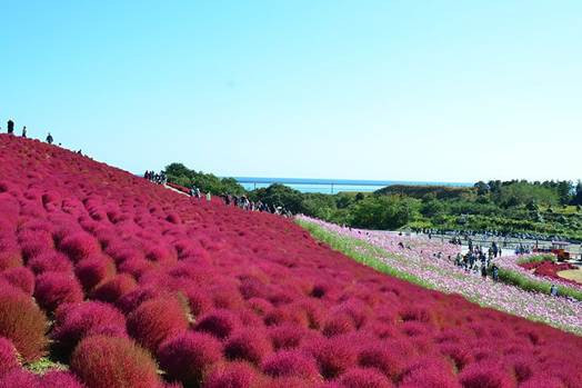 Ibraki là nơi có hoa cỏ mọc rực rỡ suốt bốn mùa, “Công viên Quốc gia Hitachi Seaside” là một trong những địa điểm du lịch nổi tiếng trong và ngoài nước ở tất cả các thời điểm trong năm. Ngọn đồi Miharashi được phủ kín bởi hơn 32000 cây Kochia, mang đến cho ngọn đồi một màu đỏ rực rỡ mỗi khi thu đến.