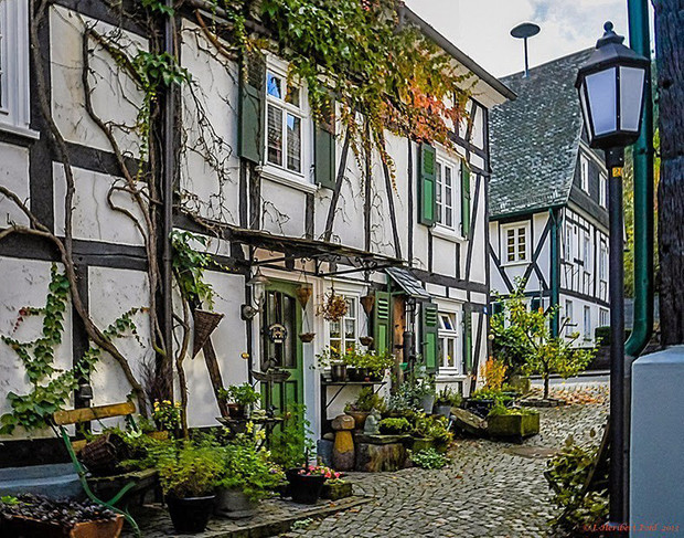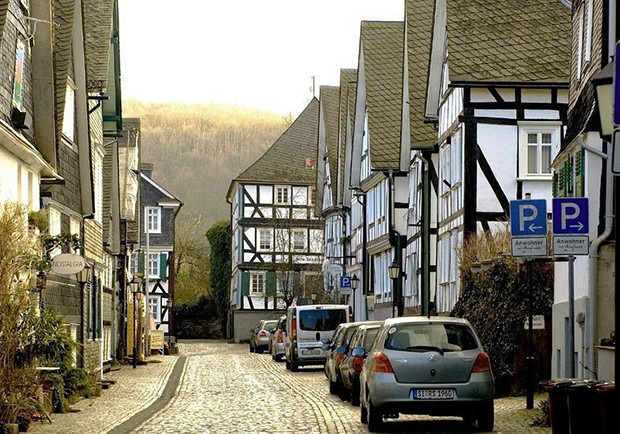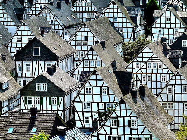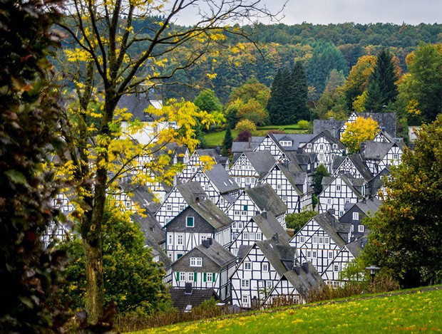 Đó là những căn được thiết kế theo hàng, gần như cùng chung kích thước, đều sơn trắng có mái đá phiến giống nhau. Hầu hết những ngôi nhà này hình thành từ thế kỷ thứ 17 khi thị trấn Freudenberg bị tàn phá do “bà hỏa tới thăm”, người dân phải xây dựng lại mọi thứ.