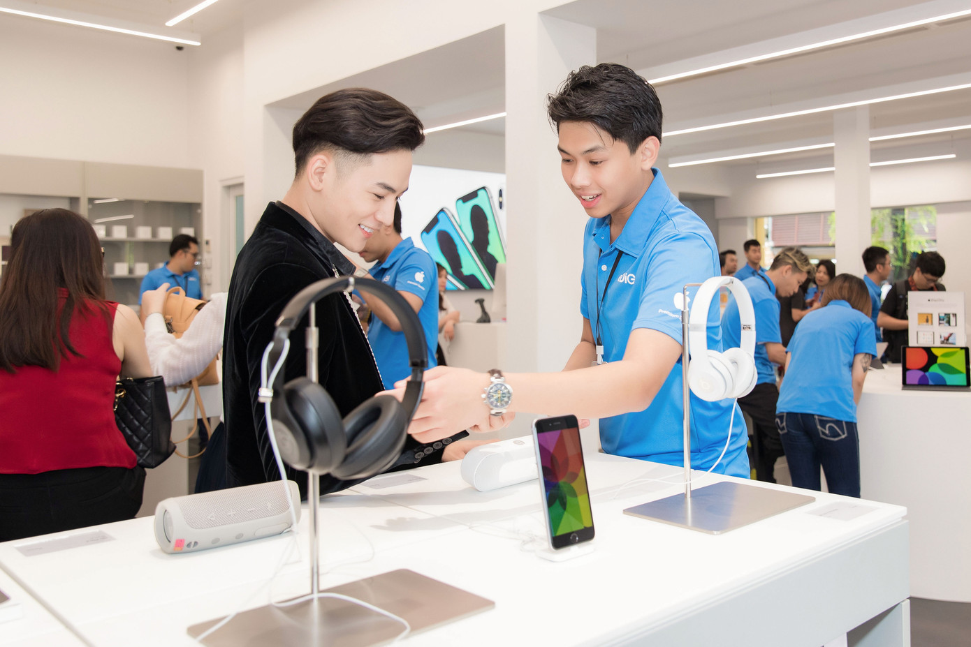 Mới đây, em chồng Hà Tăng - William Hiếu Nguyễn khiến nhiều quan khách tham dự buổi khai trương một cửa hàng công nghệ vô cùng bất ngờ khi thấy anh với vai trò nhân viên bán hàng.