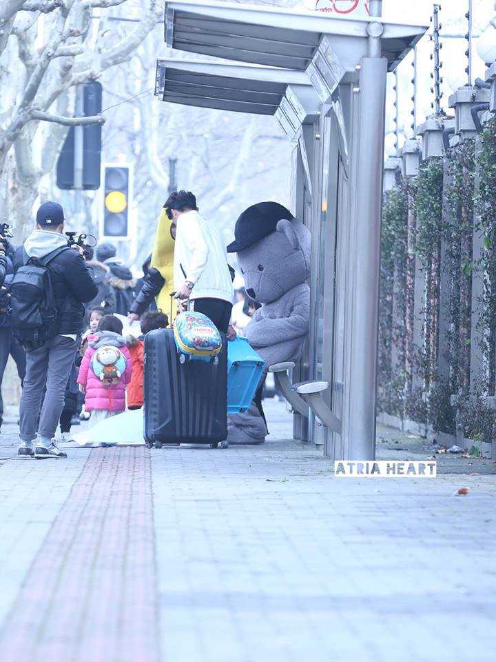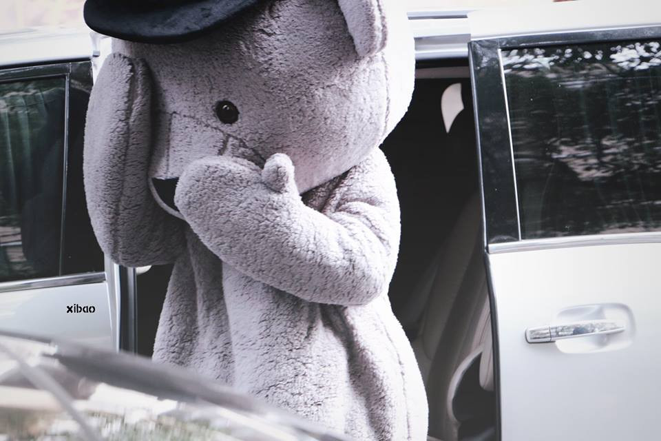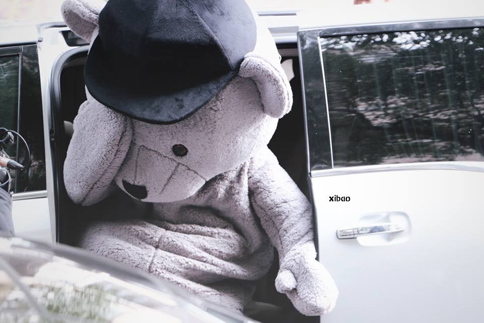 Đầu gấu khá cồng kềnh làm Thiên Tỉ thường phải đưa tay lên giữ.