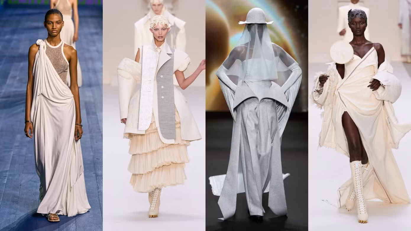 Tương phản với những kiểu dáng thắt đáy lưng ong là kỹ thuật may phá vỡ cấu trúc, được nhìn thấy trong những bộ sưu tập Haute Couture Thu - Đông 2024 của Balenciaga, Thom Browne, Dior và cả Jean Paul Gaultier.