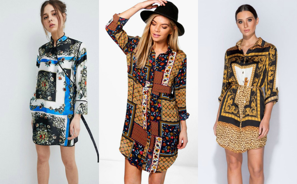 Những chiếc váy lấy cảm hứng từ những chiếc khăn quàng cổ, tại sao không? Hãng thời trang nổi tiếng Hermes được xem là hãng tiên phong cho xu hướng này khi cho ra đời những chiếc khăn lụa vuông khổ lớn có thể biến tấu thành những chiếc váy quấn mùa Hè cực xinh! Cùng cảm hứng ấy, những chiếc váy có họa tiết từ khăn quàng cổ đã ra đời. Điểm cộng của chiếc váy này là vô cùng nổi bật, cộng với chất liệu lụa, satin bóng thường ngay lập tức mang lại cảm giác sang chảnh và tiểu thư cho bất cứ cô nàng nào khoác nó lên người.