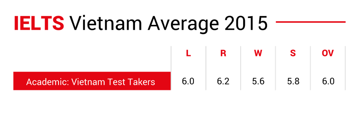 Điểm IELTS trung bình từng kỹ năng tại Việt Nam 2015