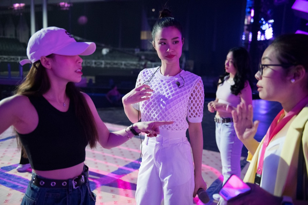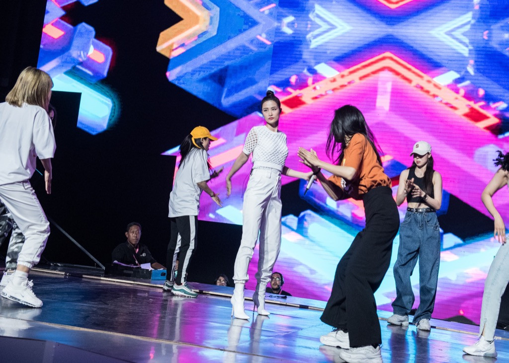 Xuất hiện với khuôn mặt được trang điểm nhẹ, cùng phong cách thời trang giản dị, năng động, Đông Nhi vẫn đầy nhiệt huyết trên sân khấu tổng duyệt. Cô diện "cây" đồ trắng năng động nhưng vẫn khoe trọn vóc dáng thon gọn của mình. Đông Nhi cũng là một trong những nghệ sĩ nữ giữ được vẻ ngoài tươi trẻ, sức sống cũng như năng lượng sau hơn 10 năm làm nghề.