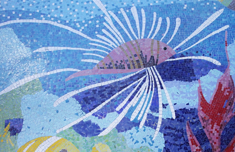 "Các bức tranh liên hoàn với những đề tài nối tiếp nhau, từ biển Hạ Long, sóng Trường Sa, trong lòng đại dương. Đây là tất cả hình ảnh chúng tôi thu lại từ kỷ niệm 5 lần ra Trường Sa để thực hiện công trình, góp phần bảo vệ chủ quyền biển đảo Việt Nam", họa sĩ Nguyễn Thu Thủy, người trực tiếp thực hiện dự án cải tạo nhà gương cho biết.