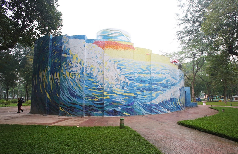 Nhằm tạo dựng lại không gian vui chơi mới cho giới trẻ và giây phút tìm về tuổi thơ của phụ huynh, thành phố Hà Nội đã cho phép nhóm 3 họa sĩ thiết kế cùng với Công ty Nghệ thuật Tân Hà Nội thực hiện ý tưởng cải tạo chỉnh trang nhà gương thành một công trình nghệ thuật gắn gốm.