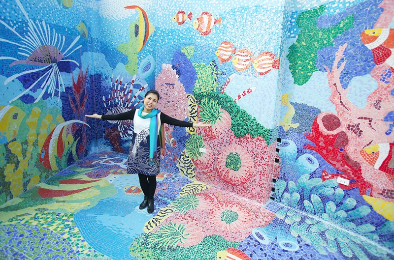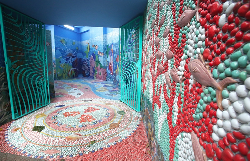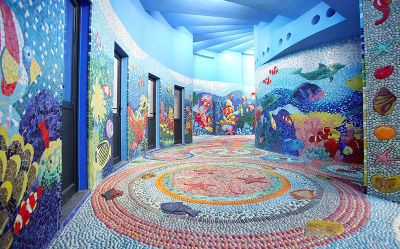 Những bức tranh làm từ hàng trăm nghìn mảnh gốm khiến khu nhà gương như được lột xác.
