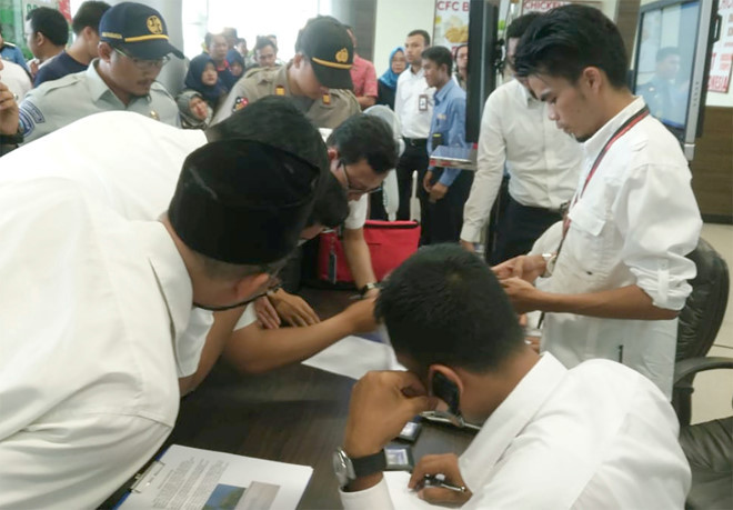 "Chúng tôi không rõ có ai sống sót không. Chúng tôi hy vọng, cầu nguyện nhưng chúng tôi chưa thể xác nhận điều gì", ông Muhammad Syaugi, người đứng đầu cơ quan phòng chống thảm họa, nói trong một cuộc họp báo ở Jakarta. Trong ảnh, nhân viên Lion Air tại sân bay Depati Amir ở Pangkal Pinang kiểm tra danh sách hành khách trên chuyến bay JT610. Ảnh: Reuters.