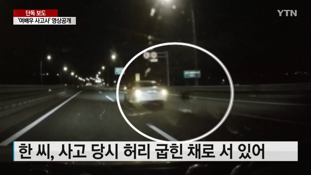 Tuy nhiên mới đây, đài YTN đã công bố clip ghi lại vụ tai nạn, được thu thập từ hộp đen của một chiếc ô tô gần đó. Khác với lời khai của người chồng, đoạn phim cho thấy Han Ji Sung mới là người ra khỏi xe trước và bị chiếc taxi đâm chỉ sau đó 10 giây. Người chồng không thể nào không nhìn thấy cảnh này.