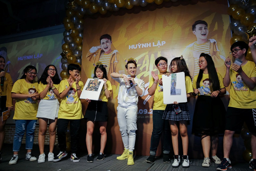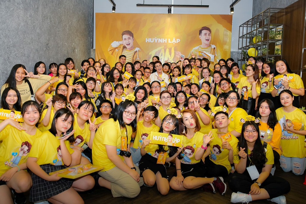 Đứng giữa vòng vây của fan với trang phục màu vàng rực – màu chủ đạo của Gold Fam, Huỳnh Lập xúc động với sự góp mặt của hơn 300 fan hâm mộ đến từ khắp các tỉnh thành, ngoài TP.HCM còn có nhiều fan lặn lội bắt xe đò từ Bình Dương, Đồng Nai, Tây Ninh, các tỉnh miền Tây và đặc biệt có nhiều fan đi từ Nha Trang về TP.HCM chỉ mong muốn được gặp thần tượng của mình.