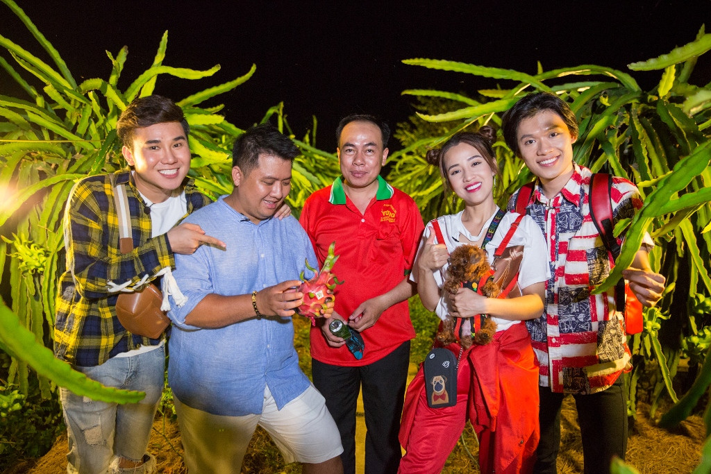 Hết ăn nem rồi lại tham quan vườn trái cây, Puka còn dẫn Diệp Tiên cùng Tiến Công và Quang Trung “tấn công” vườn thanh long nổi tiếng nơi đây, vừa tham quan vừa thưởng thức những quả thanh long chín mọng.