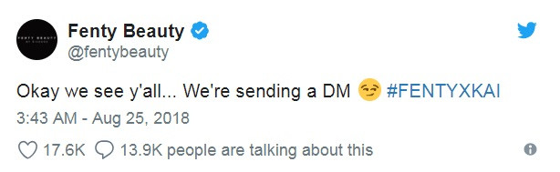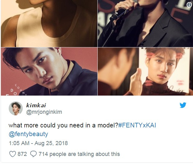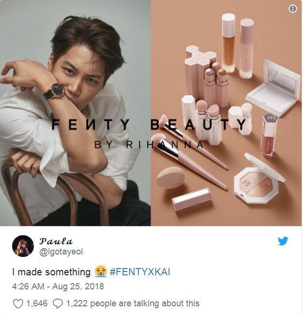 Các fan còn chế rất nhiều ảnh nhằm chứng minh Kai chính là cặp đôi hoàn hảo với mỹ phẩm Fenty, thật là tiếc nếu thương hiệu này không mời Kai làm người mẫu quảng cáo. Và điều bất ngờ là tài khoản Twitter của mỹ phẩm Fenty đã hồi đáp rất nhanh, rằng họ sẽ sớm liên lạc với Kai.