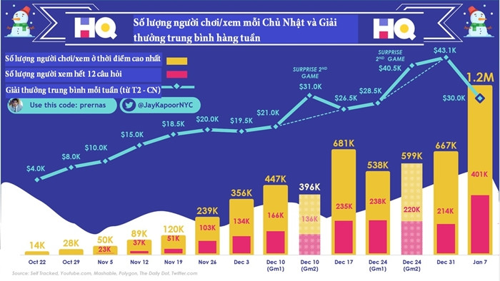 Trước đó, hình thức trò chơi này đã từng làm vương làm tướng trong thị trường game smartphone dành cho giới trẻ qua gameshow đình đám HQ Trivia Show. Chương trình này có format đố vui trắc nghiệm 12 câu, được livestream trực tiếp trên app HQ Trivia Show vào lúc 9h sáng và 3h chiều. Sau khi HQ tạo nên cơn sốt với hàng chục triệu lượt download ứng dụng trên Google Play và Apple Store, một loạt các phiên bản tương tự đã ra đời theo xu hướng chơi tương tác trực tuyến như Loco - Play Free Game, Confetti, The Q...