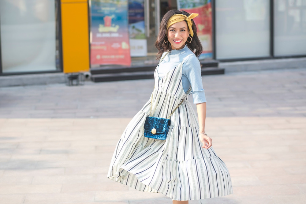 Diệu Nhi kết hợp trang phục với phụ kiện đang hot.
