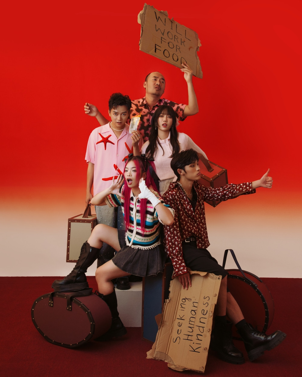 Cá tính của từng thành viên trong Mùi Vị Những Chuyến Đi cũng được thể hiện rõ nét trong bộ ảnh. Diệu Nhi yêu tiền, Bùi Công nam khờ khạo vô tri, Tiến Luật lầy lội, Cầm dịu dàng và Wren Evans ngầu đét.