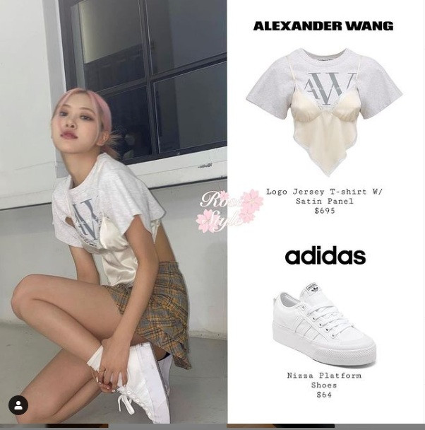 Chắc hẳn nhiều người nhìn thấy thiết kế này sẽ phải tự hỏi “mặc sao cho ổn” nhưng Rosé đã chứng tỏ không có trang phục nào xấu, chỉ là biết cách phối đồ hay không mà thôi. Rosé chỉ cần mặc cùng chân váy xòe cạp cao, giày thể thao là đủ có set đồ không chê vào đâu được.