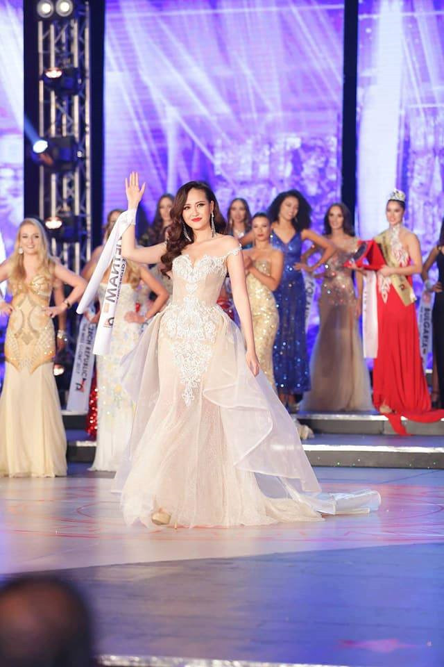 Đại diện Việt Nam nổi bật trên sân khấu đêm chung kết nhờ vẻ đẹp rạng rỡ và phong cách trình diễn xuất thần. Vẻ đẹp uy quyền của cô trong trang phục dân tộc của NTK Lê Long Dũng đã giúp Khánh Ngân nhận được sự cổ vũ nồng nhiệt từ phía khán giả.