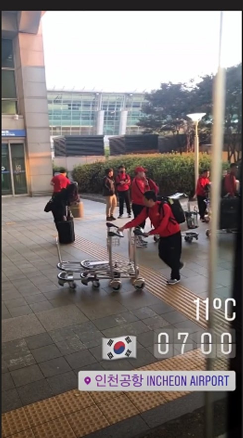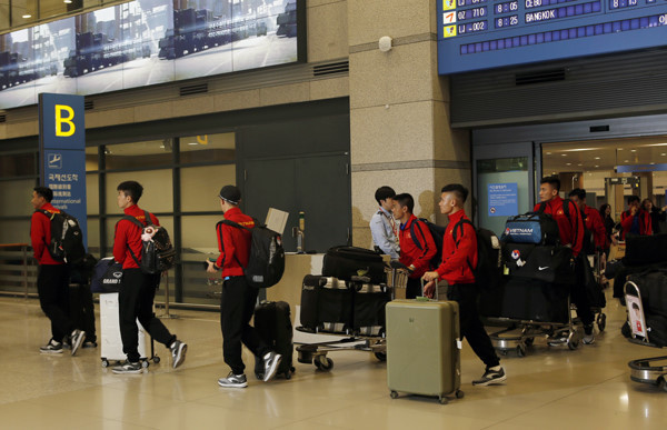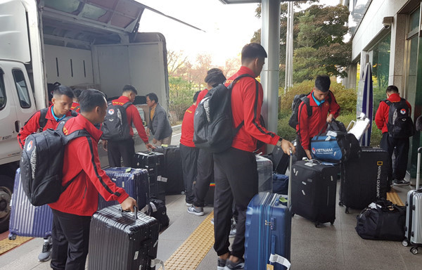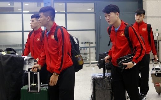 Khoảng 5h sáng (theo giờ địa phương), thầy trò HLV Park Hang Seo đã có mặt tại sân bay quốc tế Incheon, Hàn Quốc. Các cầu thủ nhanh chóng hoàn thành thủ tục nhập cảnh trước khi lên xe bus di chuyển về Trung tâm thể thao Paju.