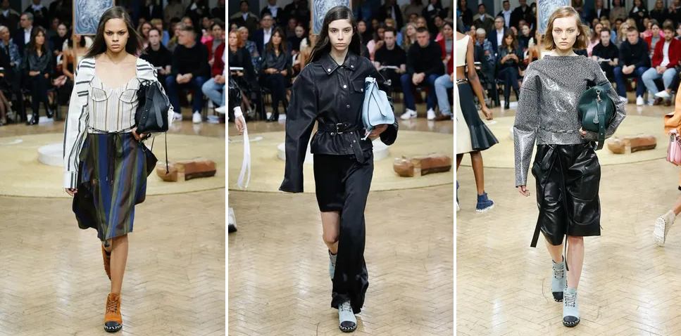 Tại London, buổi trình diễn của Simone Rocha cũng cho thấy khá nhiều người mẫu xách túi theo cách không ai giống ai. Những chiếc túi được cầm theo cách sáng tạo và phá cách, tháo bỏ mọi nguyên tắc. Đây cũng là cách để làm mới những chiếc túi lớn, big size, cồng kềnh.