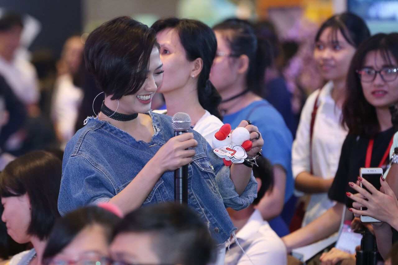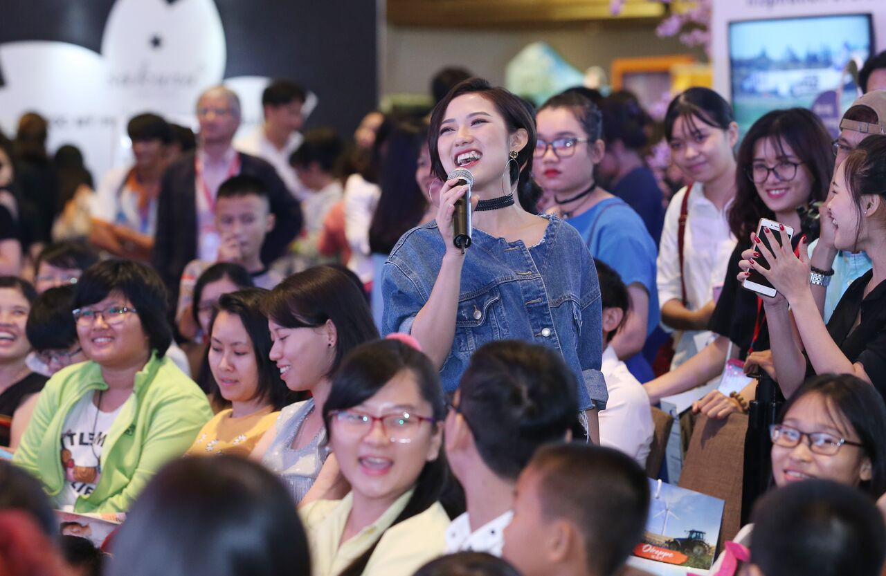 Đáng chú ý, sự kiện còn có sự góp mặt của người đẹp Trang Cherry - nàng Diệp trong Sống chung với mẹ chồng. Vừa qua, nữ diễn viên đã có chuyến đi Nhật Bản dài ngày để thực hiện một series truyền hình thực tế. Cô đã chia sẻ cảm nghĩ và những kỉ niệm trong chuyến đi với đông đảo khán giả. Ngoài ra, cô cũng có những món quà từ Nhật Bản gửi tới những khán giả tham dự sự kiện.