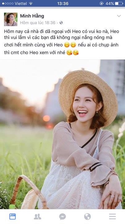 Kết thúc buổi offline thành công, Minh Hằng đã đăng tải dòng trạng thái chia sẻ niềm vui với người hâm mộ trên facebook cá nhân: "Hôm nay cả nhà đi dã ngoại với Heo có vui ko nà, Heo thì vui lắm vì các bạn đã không ngại nắng nóng mà chơi hết mình cùng với Heo. Nếu ai có chụp ảnh thì cmt (comment) cho Heo xem với nhé!".