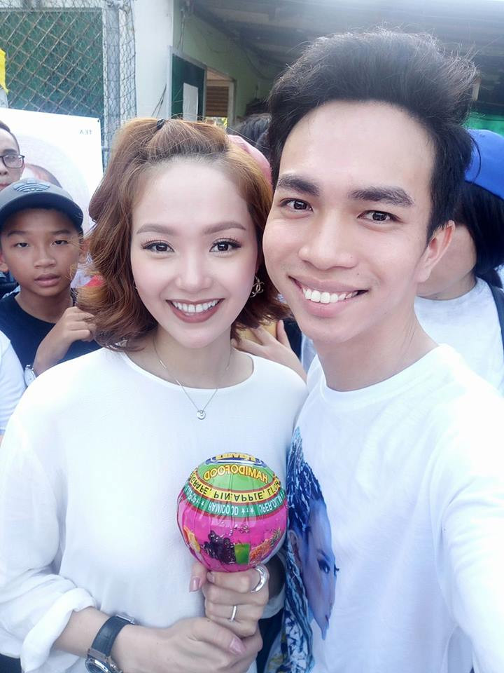 Minh Hằng rạng rỡ bên người hâm mộ.