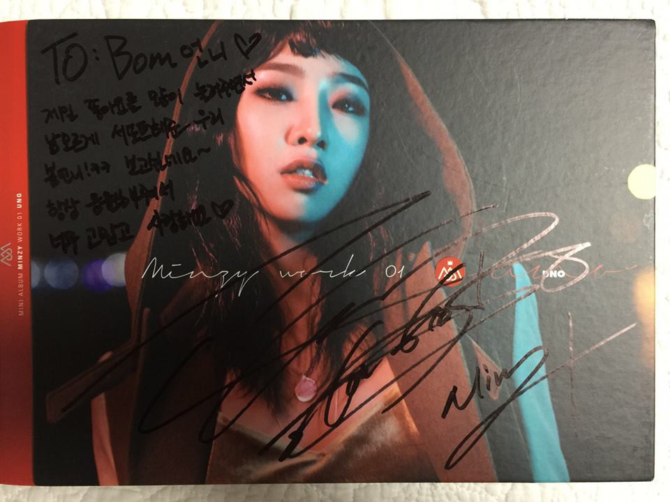 Lời nhắn động viên mà chị cả gửi đến em út cũng vô cùng dễ thương: “Đây là CD có chữ ký của Minzy nè...~ Cảm ơn em nhé! Các chị sẽ mãi mãi ủng hộ em~~~ ".