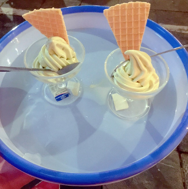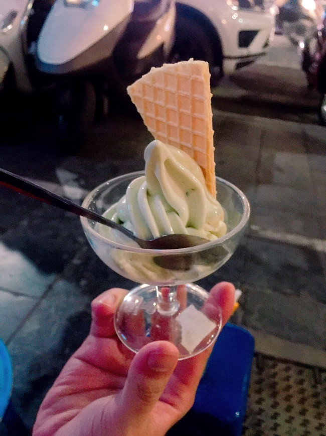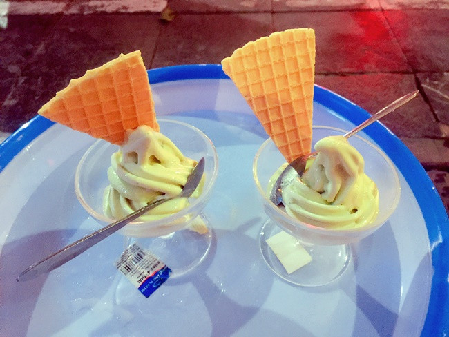 Một điều lưu ý là không nên uống nước mía trước khi ăn kem mía nhé, bởi vị nước mía chắc chắn ngọt hơn nhiều so với mía đã được trộn với kem, khi đó bạn sẽ khó cảm nhận rõ vị kem mía đấy. Đổi vị với kem mía mát lẹm trong mùa hè này, sau đó thêm một ly nước mía nữa thì bao nhiêu nắng nóng cũng có thể chấp hết luôn. Kem hiện được bán ở phố Nhà Thờ, với giá khoảng 15.000 đồng/ ly.