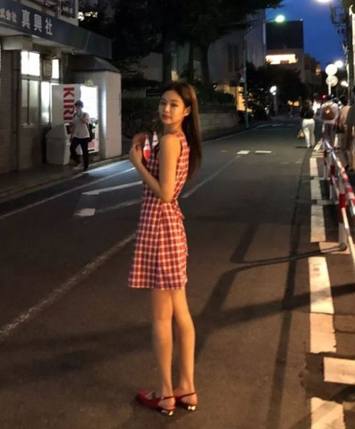 Chẳng hạn như Jennie rất thoải mái với chiếc váy đỏ có kiểu dáng đơn giản trẻ trung này. Váy có thắt đai phía sau, giúp cô nàng khoe khéo vòng eo thon thả. Jennie kết hợp với giày bệt cùng màu, tạo thành tổng thể vô cùng hài hòa.