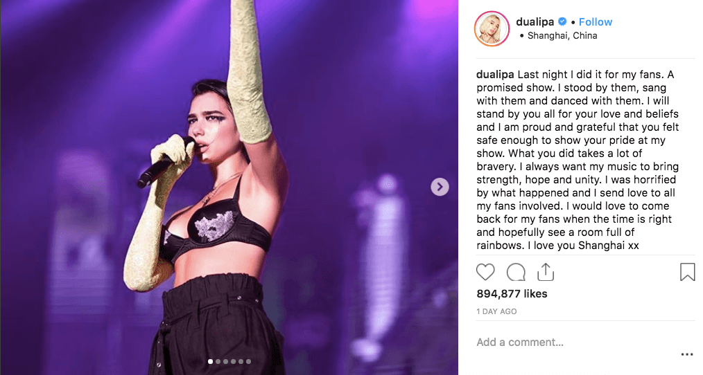 "Tâm thư" của Dua Lipa được đăng tải ngay sau concert tại Thượng Hải.