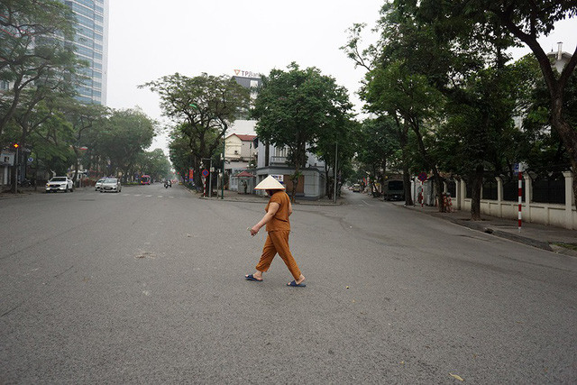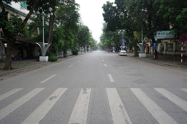Đường phố Hà Nội trở nên vắng lặng khác hẳn với nhịp điệu thường ngày.