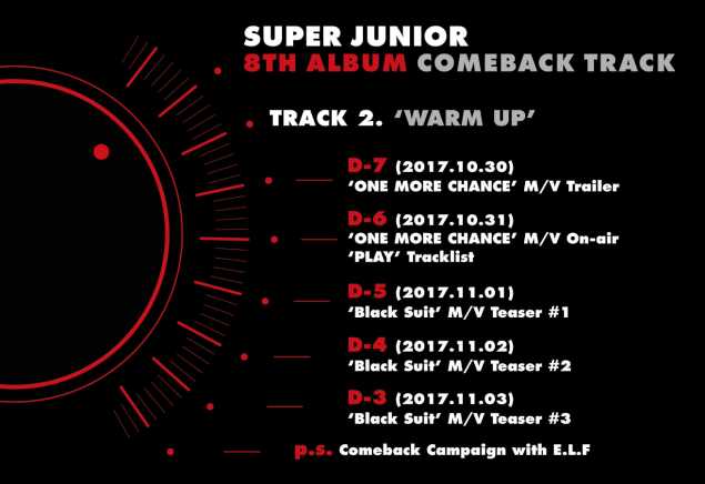 Vào ngày 30 tháng 10, Super Junior đã tung ra các mốc thời gian của lần comeback này và đoạn teaser MV One More Chance. Từ ngày 30 tháng 10 đến ngày 3 tháng 11, Super Junior sẽ "nhá hàng" nhiều bài hát của MV cũng như tracklist cho album thứ 8.