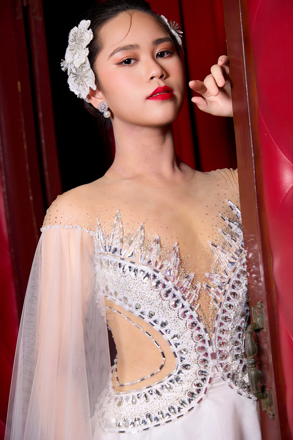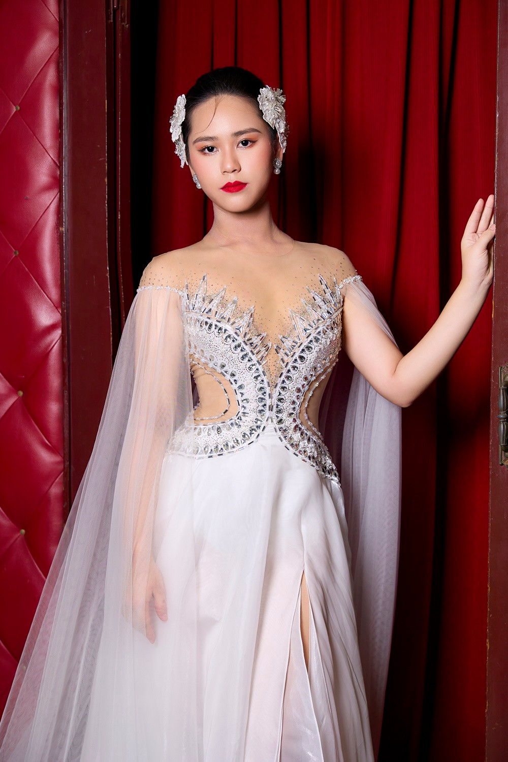 Đây chính là Miss Eco Teen International Bella Vũ. Để có thể tự tin tỏa sáng cạnh nhiều Hoa hậu đình đám khác, Bella Vũ đã được ê-kíp chăm chút kỹ lưỡng từ khâu trang điểm đến trang phục.