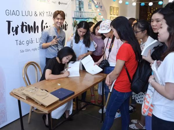 Theo ghi nhận rất đông các bạn học sinh, sinh viên từ Hà Nội, Đà Nẵng, Long An… đã sắp xếp việc học để vào TP.HCM cùng gặp gỡ và chia sẻ với tác giả của quyển sách. Trong buổi giao lưu, MC Hà Trinh đã gặp rất nhiều câu hỏi “khó” từ độc giả xoay quanh nội dung của quyển sách. Khi bị “bắt bẻ” chuyện từng yêu nhiều, “Én vàng” Hà Trinh thú nhận cô bắt đầu yêu sâu đậm vào năm 19 và với một anh chàng… Hà Nội. Sau đó, cô cũng trải qua 4 mối tình khác trước khi gặp bạn trai hiện tại. Quan trọng hơn, 4 trên 5 “mảnh tình” ấy lại là những chàng trai nhỏ tuổi hơn. Cô thừa nhận mình thích sự trẻ con, đáng yêu của những anh chàng này, tuy nhiên trong tình cảm họ lại rất ấm áp, trưởng thành và cứng cỏi.