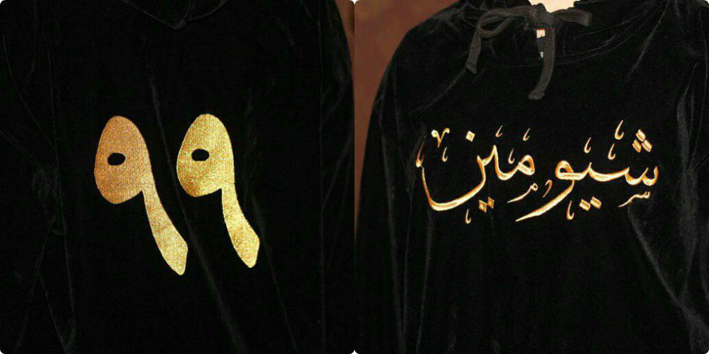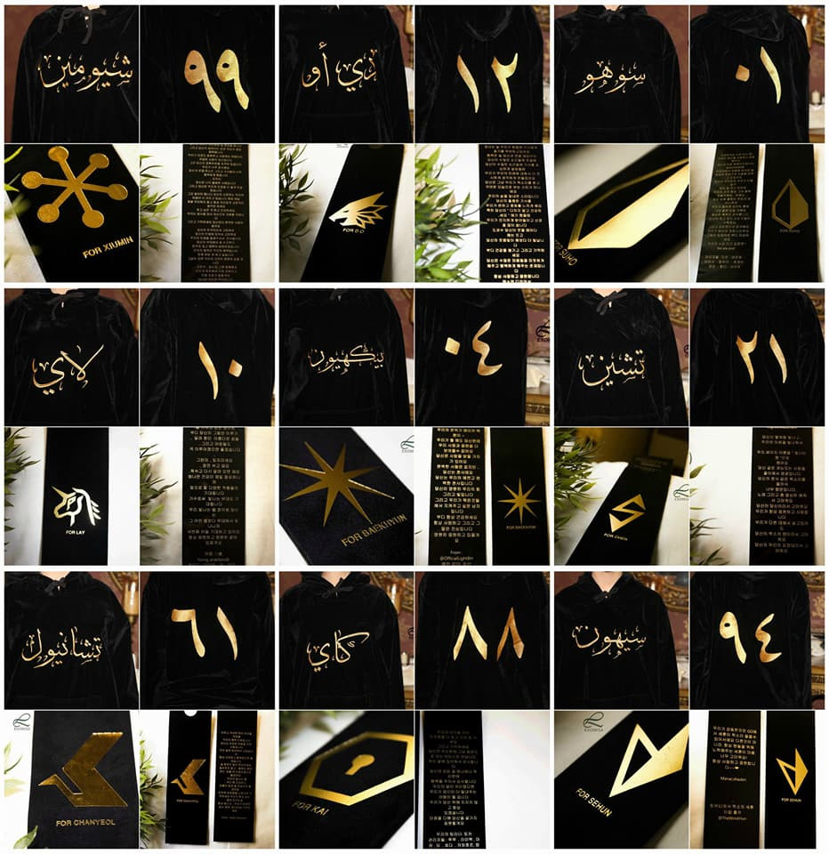 Mỗi chàng trai sẽ nhận được một chiếc áo hoodie màu đen được đặt riêng theo kích cỡ cơ thể từng người, có thêu tên từng thành viên bằng chữ Ả Rập. Điều đặc biệt là sợi chỉ thêu được làm bằng vàng thật. Phía sau lưng áo là con số may mắn của mỗi người, cũng thêu bằng vàng luôn.