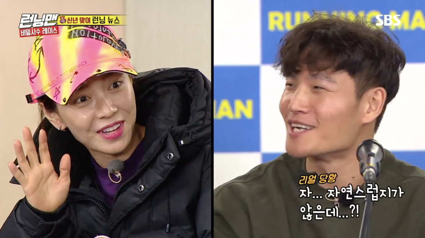 Song Ji Hyo ngay lập tức đùa: "Oppa ơi em ở đây nè" làm tất cả mọi người phá lên cười. HaHa còn trêu rằng anh có nên đổi chỗ ngồi để Song Ji Hyo và Kim Jong Kook ngồi cạnh nhau hay không.