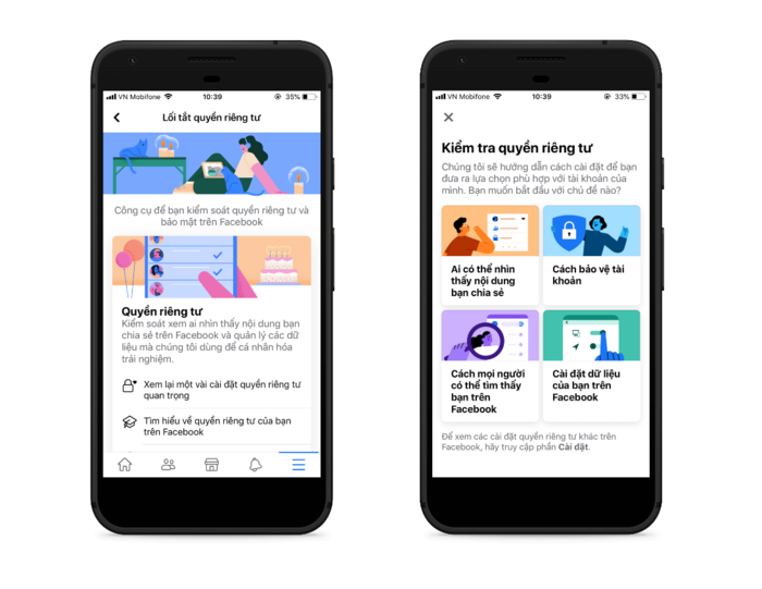 Công cụ Kiểm tra quyền riêng tư đã được giới thiệu từ năm 2014 và phiên bản mới đã được ứng dụng trên khắp toàn cầu vào tuần này. Người dùng có thể tìm hiểu thêm về cập nhật quyền riêng tư mới của Facebook tại Trung tâm trợ giúp: